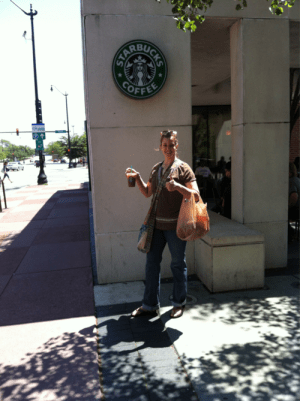Ok. So, being two blocks from one of my five jobs, I visit this Starbucks quite frequently. But this particular visit was purely for personal gain and healthy snacks from the adjacent Jewel prior to a day’s car trek to St. Louis. I made it one of my standards… Iced coffee with a pump of peppermint and soy milk (try it! it’s delicious!). I was delighted to find one of my former students behind the counter, who not only gave great service but informed me he was running four races this season (2 of which are half marathons). Way to go, Alex! And way to pick an honorable place of employment that gives nice benefits, free coffee, and a snazzy apron. Even though it was packed when I walked in, the line moved fast and overall the South Loop store gets a thumbs up from me.
