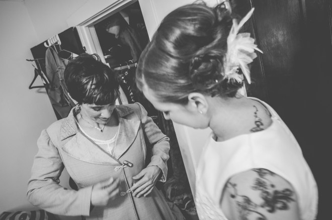 Julie’s jacket: Rebecca Shouse. Hair: Carissa Felber. Photo: Kelly Dwyer.
