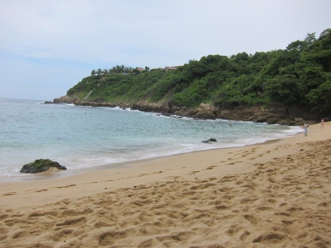 There are many beaches here in Puerto, the most famous of which is Playa Zicatella (the home of the reputed “Mexican Pipeline”). We did spend some time on Zicatella watching surfers, but our favorite beach here by far was Playa Marinero. It’s a short walk to the right of the surfer mecca and on open waters (instead of a bay). So there are some nice waves to play in but it’s not as dangerous for swimming as Zicatella. We spent three days on Playa Marinero and now proudly boast bronzed bodies and sand in places we never knew we had.