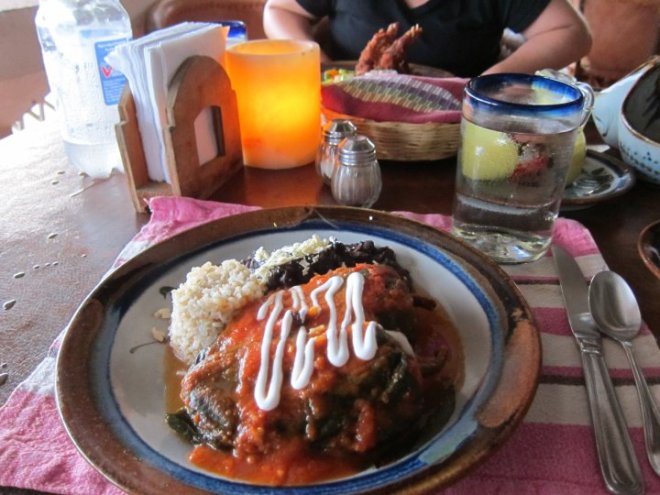 By FAR the best meal on this trip (and quite possibly of my entire life) was at the Hotel Santa Fe on Playa Zicatella. Refined but unpretentious, our meal was elegantly presented, with amazing service, and the food was damn good. Be sure to have the stuffed avocado for an appetizer. I had the chilies rellenos. Nancy had coconut shrimp. The sun set over the beach. Save room for strawberry pie and coffee. There’s not much else I can say about this except that if you are ever in Puerto Escondido, you MUST eat here.