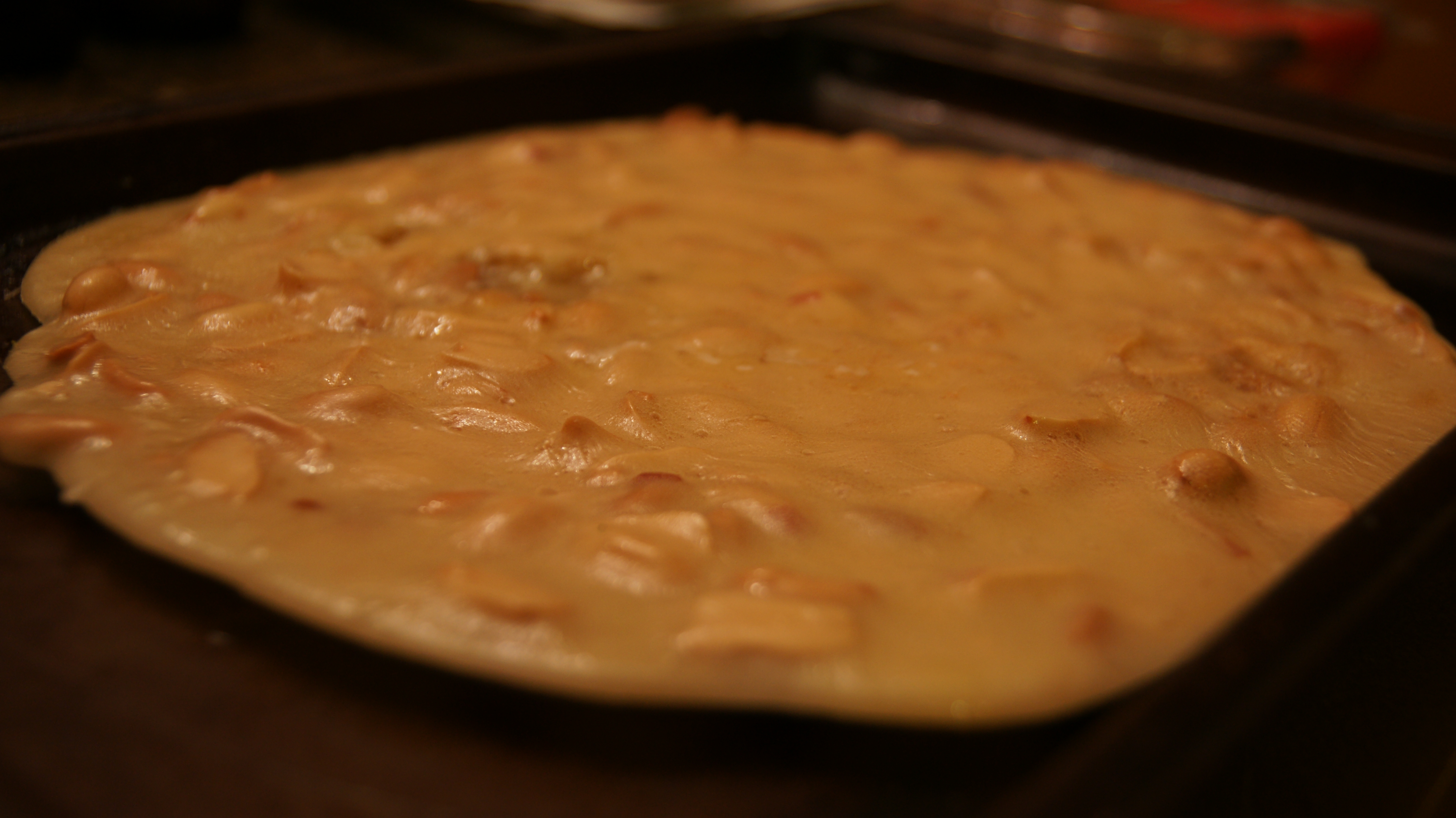 Considering my milk pitcher temperature-reader-thing only goes up to 220-deg, this was a lot of guess work and turned out fairly well. Candy is not the easiest thing to make, but you can’t taste an amber ale without peanut brittle (as we’ve come to find out). The thing is, the stuff from the grocery store is really expensive and has gross ingredients like high fructose corn syrup and partially hydrogenated peanut oil. This was the recipe I used, and, apart from being a little sticky it turned out pretty darn good.